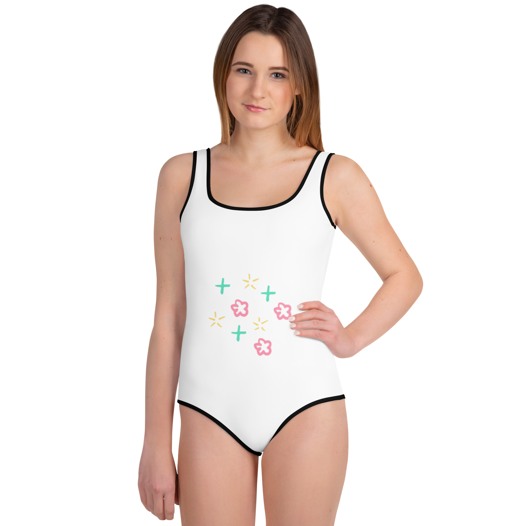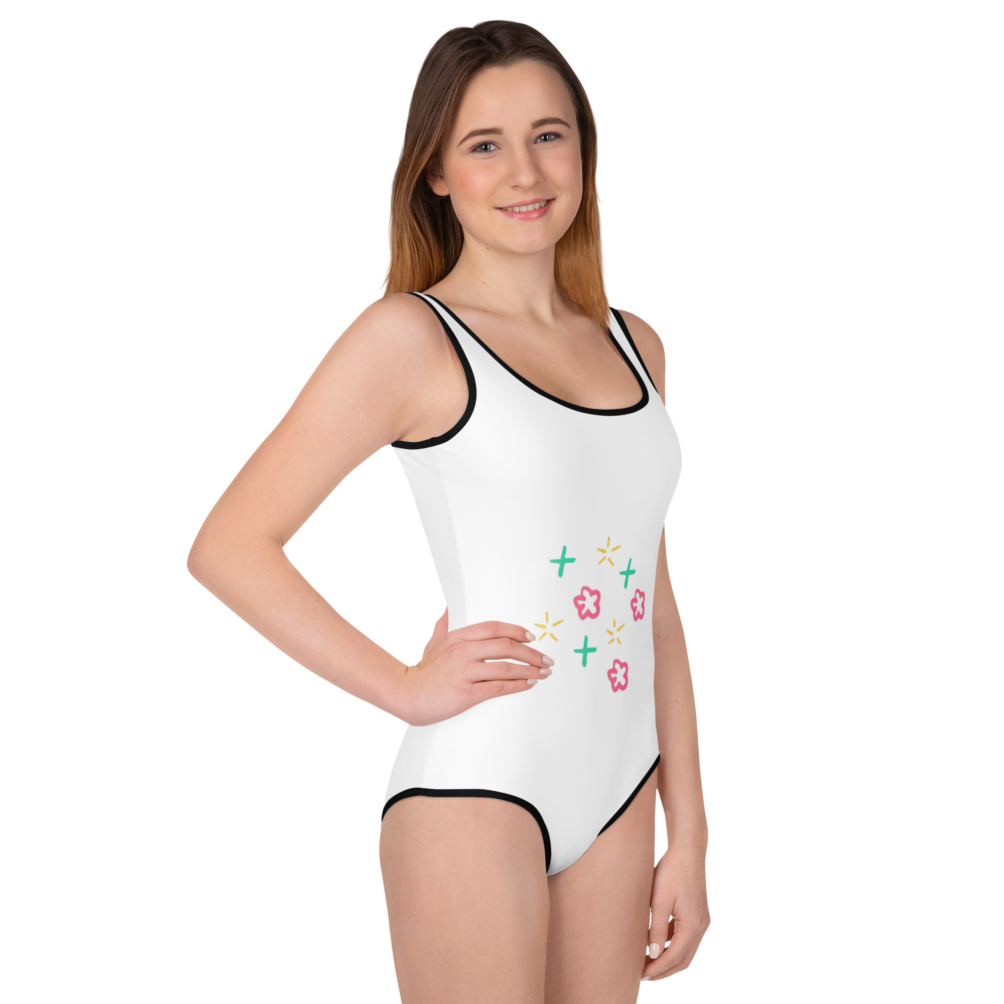 Be the first to review “All-Over Print Youth Swimsuit “Petal Glow””