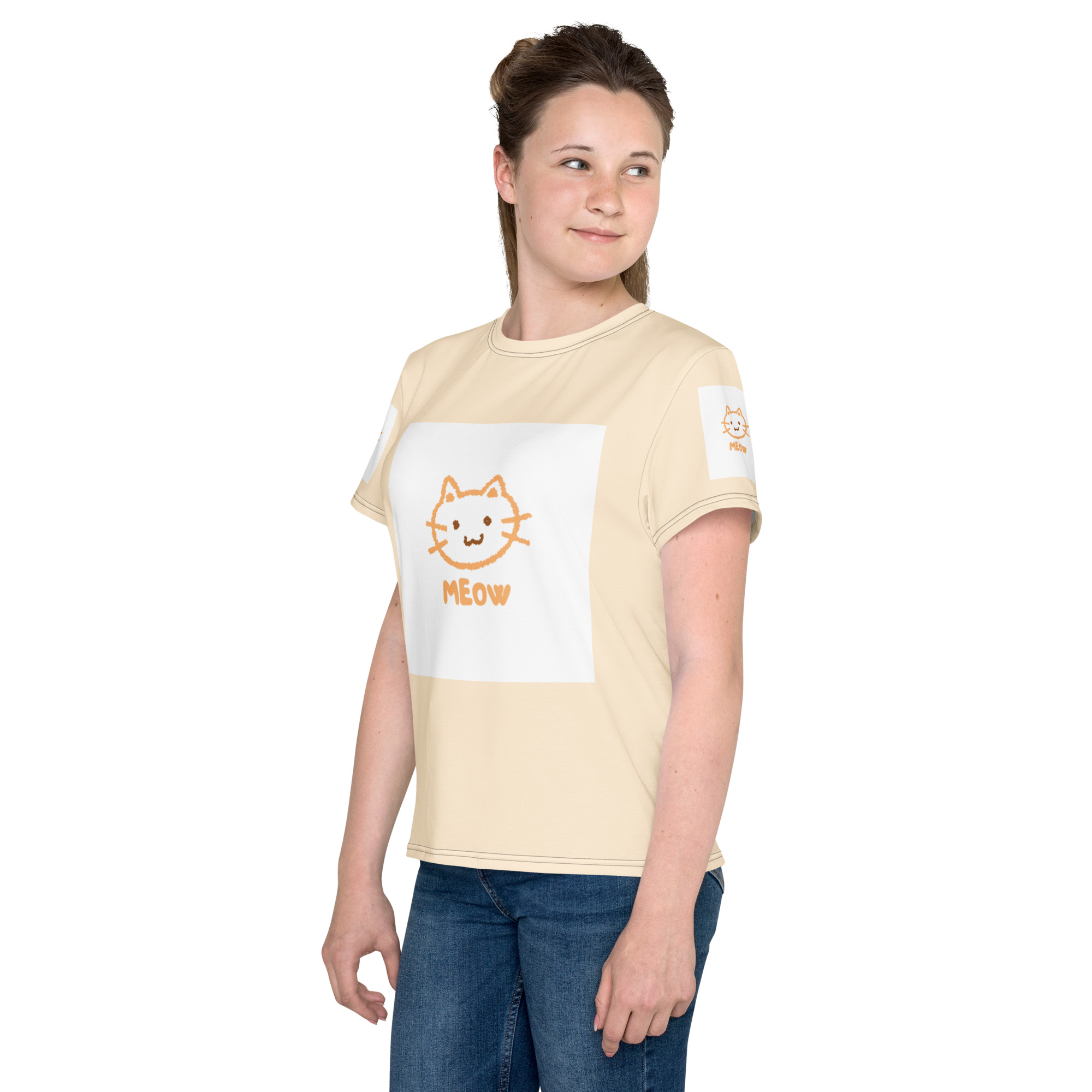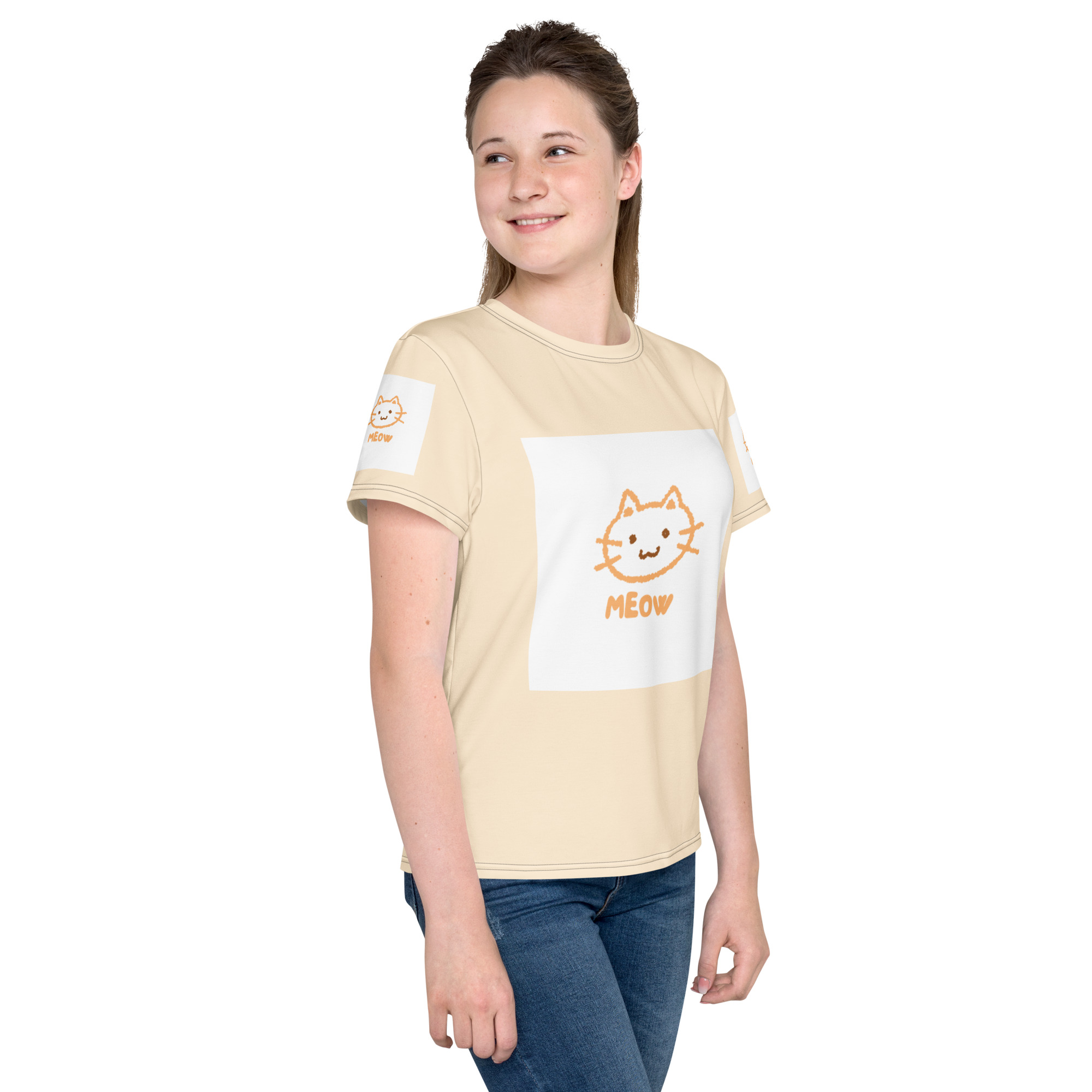 Youth crew neck t-shirt “Meow”